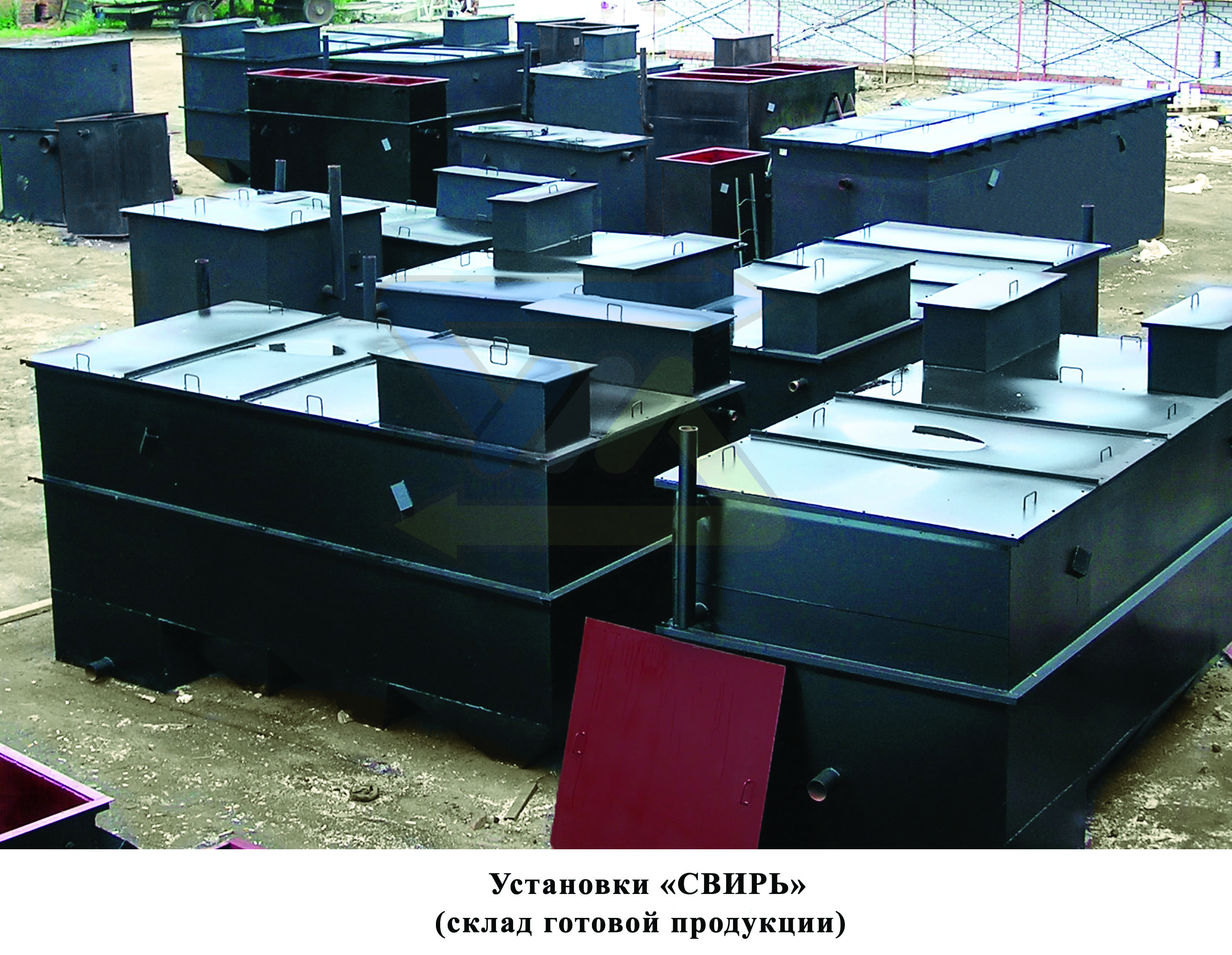 Установка «СВИРЬ-15УН» с производительностью 15 л/сек. предназначена для очистки поверхностных сточных вод (дождевых и талых) на территориях автозаправочных станций, автостоянок, складов горюче-смазочных материалов, нефтебаз, промышленных зон и жилых районов с примерной площадью водосбора до 1,5 га.
